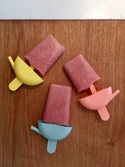 kog frugterne op med vanilie pulveret og blend det. Blend det herefter med kokos cremen. kom det i is formene og frys dem til næste dag hvor det er en sund og lækker eftermiddags treat. Lad evt. ungerne selv være med, så er de også sjovere at spise. Jeg havde en rest af dette frugt pure tilbage som jeg kom i fryseren. så kan du evt. tø det op og blende det med cremen en anden gang, eller bruge det som topping på yogurthen.